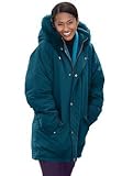 Woman Within Plus Size Microfiber Down Parka With Faux Fur Trim Jacket (Royal Teal,1X)